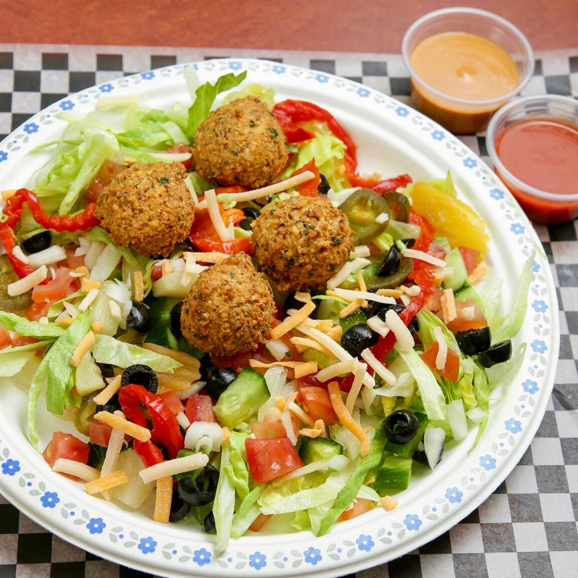 A wholesome vegetarian choice — our Falafel Rice Plate features golden, crispy falafel served with fluffy seasoned rice, fresh toppings, and up to 3 sauces of your choice.
